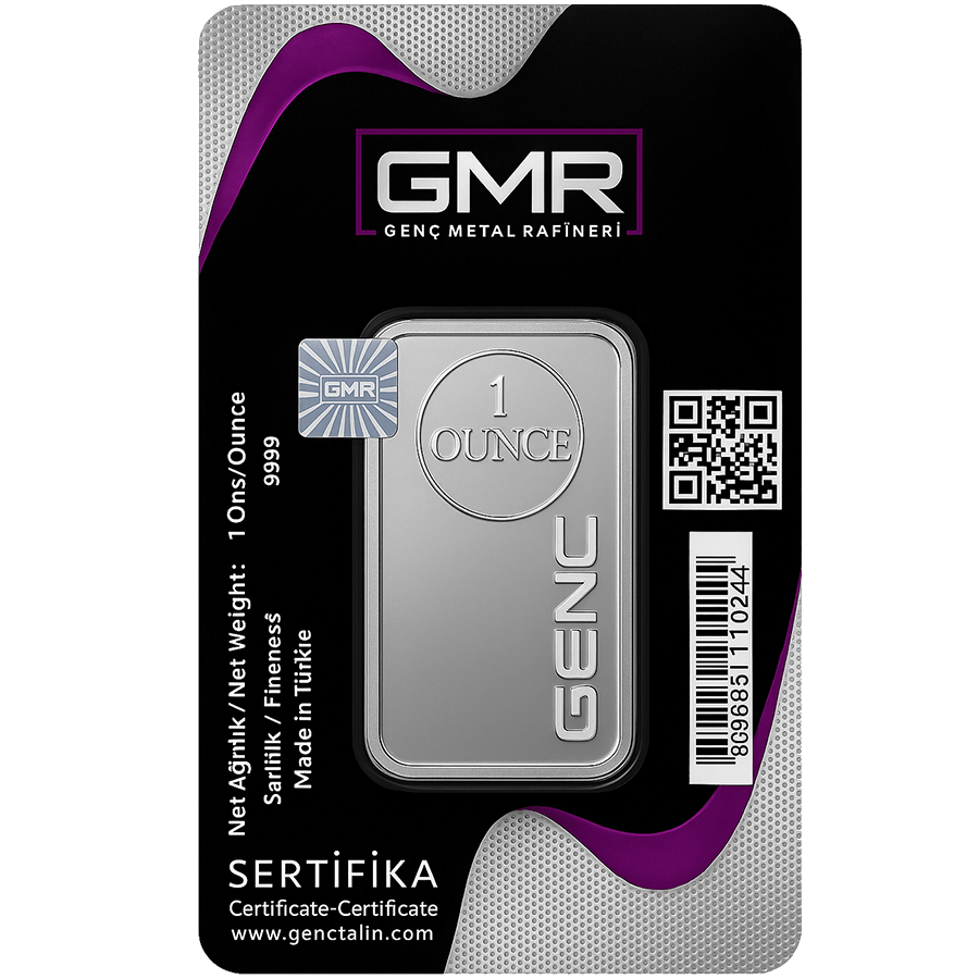 شمش نقره جی ام ار با عیار 999 دارای هولوگرام و سریال اختصاصی که بصورت وکیوم شده توسط یکی از معتبرترین برندهای کشور ترکیه GMR تولید و عرضه شده است .