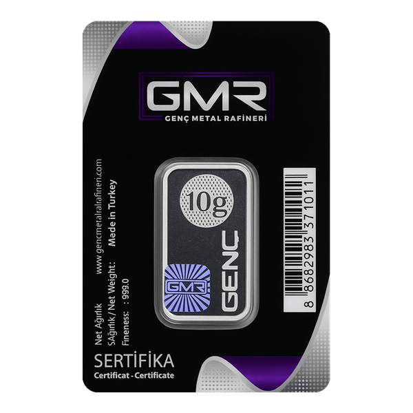شمش نقره جی ام ار با عیار 999 دارای هولوگرام و سریال اختصاصی که بصورت وکیوم شده توسط یکی از معتبرترین برندهای کشور ترکیه GMR تولید و عرضه شده است .